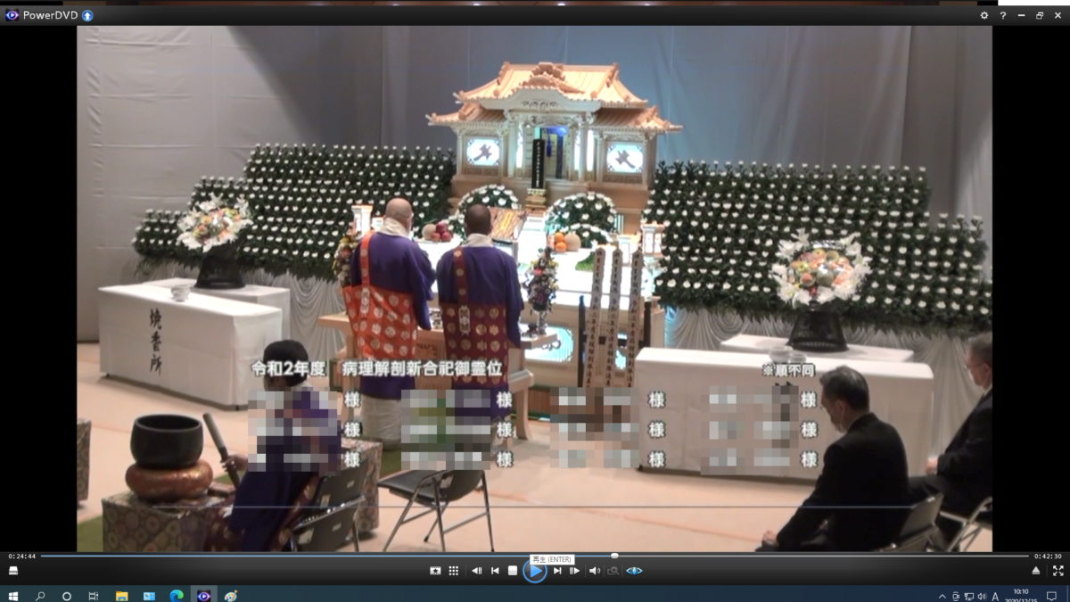 系統解剖体、病理解剖体、法医解剖体と大変注意深く慎重にご芳名を読み上げる。