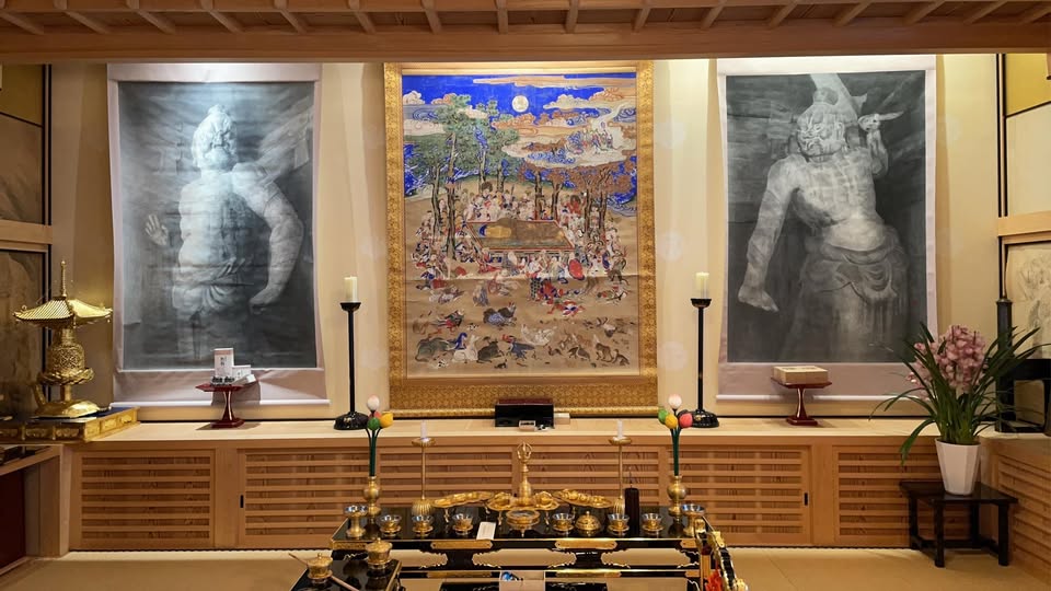 財賀寺様からは重要文化財金剛力士像一対の模写力士像がでーっんと涅槃像を御守りする