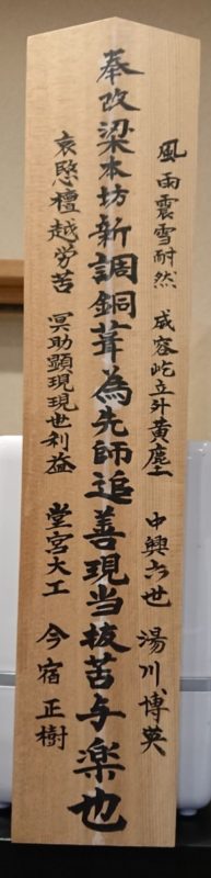 先日 本坊本体の棟や柱を取替作業中に堂宮大工さんから「棟札がありました」と持参してくださいました事は先回の下りでご紹介を...