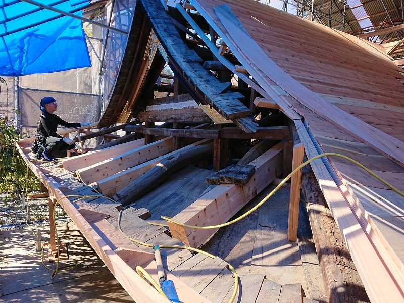 今夏から開始された本坊屋根部分の大改修と瓦屋根より銅板葺き工事で屋根下地材の引きめくり工事が開始された。平成15年頃、...