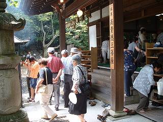 朝4時より集合で準備を始める。とても疲れた。お参りの方の彼方此方で「テレビを見たよ」と言われ恥ずかしいやら嬉しいやらでした。特に例のお参り大好きのドクターF先生からは「僕は見る積もりは無かったんだがたまたま見たら貴方が写っていた。お化け地蔵のそばでもっと怖い人が立っとった。(名古屋弁)」とニコニコしながらこの忙しい私に話しかけていただいた。まあ先生も元気で宜しい。お目当ては朱印帳かなと思っていたら「ナカナカ筆が進まない」とポツリ。筆書きの方もマイペース。先生はあちこちのお寺を見て周り色々なご意見をお持ちだ。何か言われる前に「では失礼します」と逃げてきた。色んなことがあり疲れましたがお世話人さんの方がもっとお疲れになったと思うと愚痴も言えませんです。少し今日の写真をアップします。