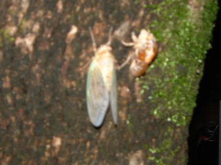 あと少しで梅雨の終焉を迎えると言う。先ほど柿の木のそばを通りかけたら蝉が羽化して成虫となる所を見てしまった。早速今日のhpに載せるべくデジカメを持て写し始めた。中々真っ暗闇の中で写真をとるとは難しいことだ。では私の写真をご覧ください。