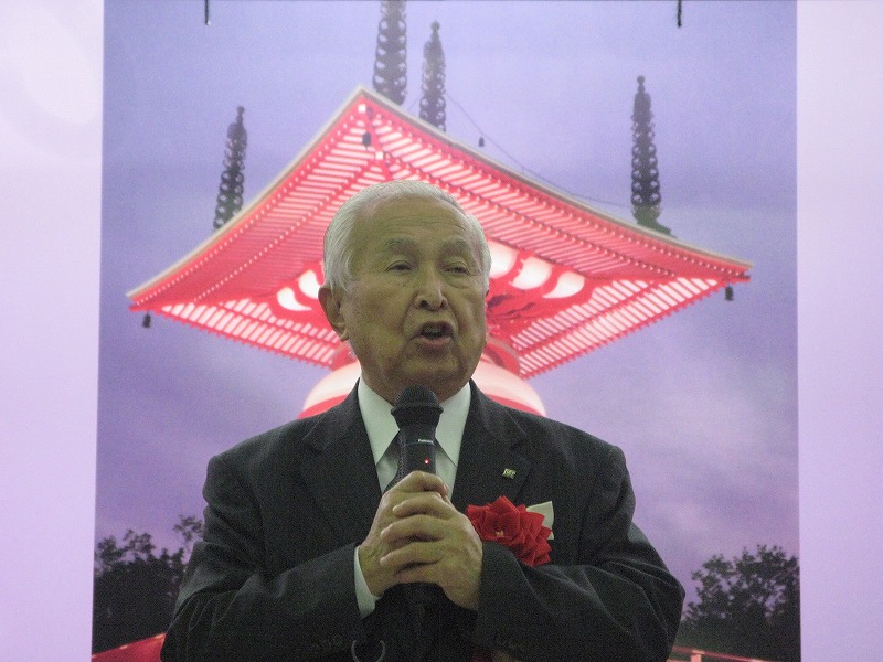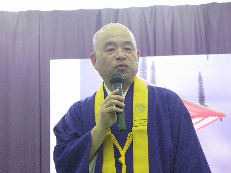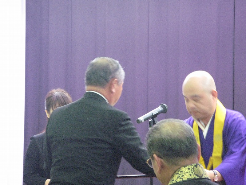 式典会場 四国二十三番札所 薬王寺住職 入場 お寺の瑜祇塔の写真を正面に祀りました 感謝状 贈呈 導師様のご挨拶 記念講演 尊厳ある終末について