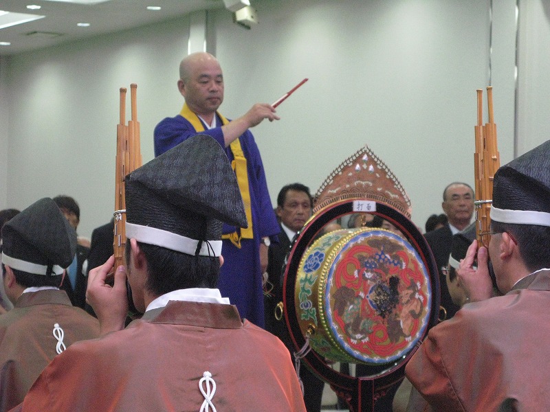 東京地検検事のご経験から尊厳死及び医療のお話しを頂きました雅楽の始まりです 当日朝、楽人(雅楽の楽団)より 君が代演奏の指揮を依頼されました
