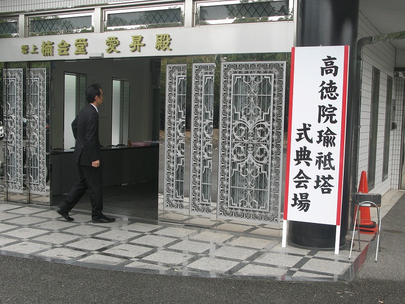 お昼ご飯を皆さんで頂いて、工事現場へ行くと六波羅蜜会堂での永代供養への訪問者が切れることなくお越し頂き係も忙しそうにご対応をしていました。私も少しお手伝いをして工事現場の様子を見に行くと、大きなトラックが現場事務所を荷台につり下げて撤去の作業をされていました。工事が終わったんだな〜と感慨無量の気分になりました。山の中は見違えるほどに落ち着きと静寂としっとりとした上品な空間に様子を一変させて、私の心にも満足感が漂ってきました。「あれ〜、高徳院の山ってこんな風だったっけ?」と私にお参りの方が声を掛けました。「子供の頃よく遊んだけど・・・」といぶかしそうでした。「そうだよな、こんな上品じゃなかったよな」と私が言うと皆さん大笑いでした。まぁ、境内全体が樹木に覆われ、その中心部が建物と竹林で荘厳され、瑜祇塔が蒼天に突き抜けるという風景が、多くの方の印象深い感想になっていると思うと、住職としては大変に光栄なことと思います。28日はあまり天気が芳しくなさそうな予報が出ています。だんだんと寒くもなってきています。何とかお参りに来られた方々へは不便の無いような一日を迎えたいと切に願っています。