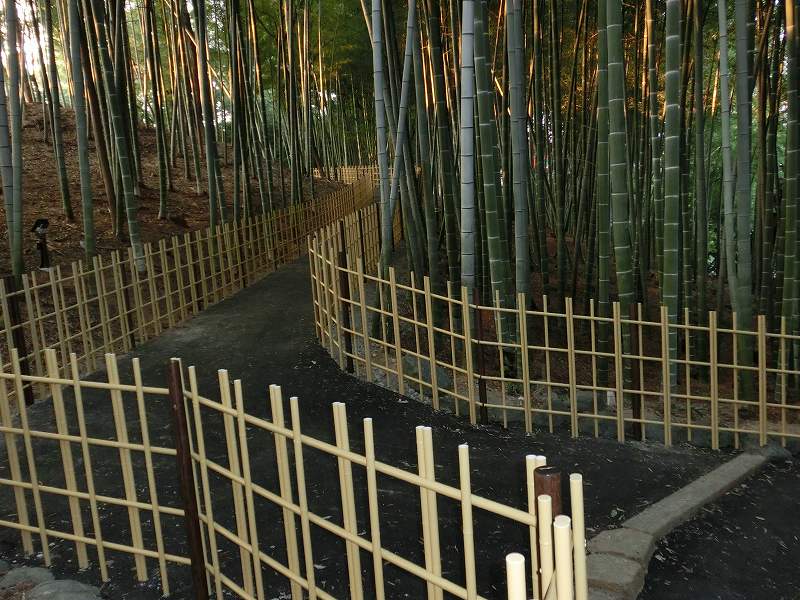 追加工事の様子です。以前は松やモミジが多く生い茂っていましたが松食い虫のせいで殆どが枯れてしまった当寺の山。私は何時か竹林になることを夢見て、竹を守り続けました。タケノコ泥棒から守るため春先から初夏まで、大変辛い作業でありましたが、フェンスを張り杭を打ち、境内の一部を通行止めにしてやっとの思いで京都嵯峨野に近い風景を醸し出すことが出来ました。私は数十年前、嵯峨野の大河内山荘の回りを歩き、心癒された思い出があり、今、お寺の本堂裏はきれいな竹林をめぐる境内散策路と成りました。まだまだ整備をしなくてはなりませんが工事の様子です。